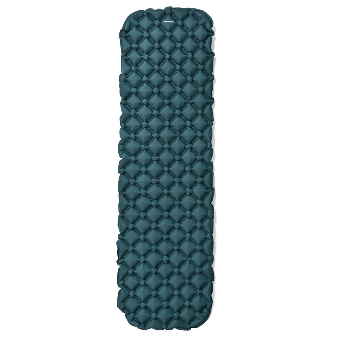 Wykonany jest z materiałów odpornych na ścieranie i elastycznych. Po zrolowaniu materac zajmuje niewiele miejsca, dzięki czemu możemy włożyć go do plecaka. Szeroki wlot powietrza i duży worek nadmuchujący umożliwiają szybkie napompowanie materaca.