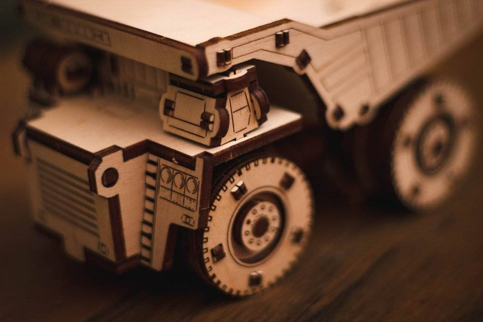 BELAZ Mini - młodszy brat zestawu konstrukcyjnego BELAZ 75600. Model ma unoszący się tył i kaptur, który może służyć jako mała sekretna skrytka.