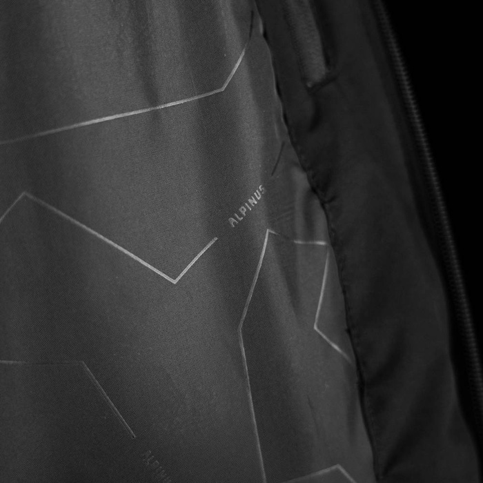 Regulowany kaptur z wysokim kołnierzem osłoni głowę przed niekorzystnymi warunkami atmosferycznymi, a ocieplany mikropolarem kołnierz ochroni przed podmuchami zimnego powietrza. Rękawy wyposażono we wstawkę z elastycznego materiału, która stanowi wygodny ochraniacz dłoni przed niskimi temperaturami. Mankiety kurtki można dodatkowo regulować za pomocą specjalnych rzepów z delikatnie sygnowanym logo Alpinus. Kurtka posiada także praktyczną tasiemkę, ułatwiającą jej wygodne wieszanie.